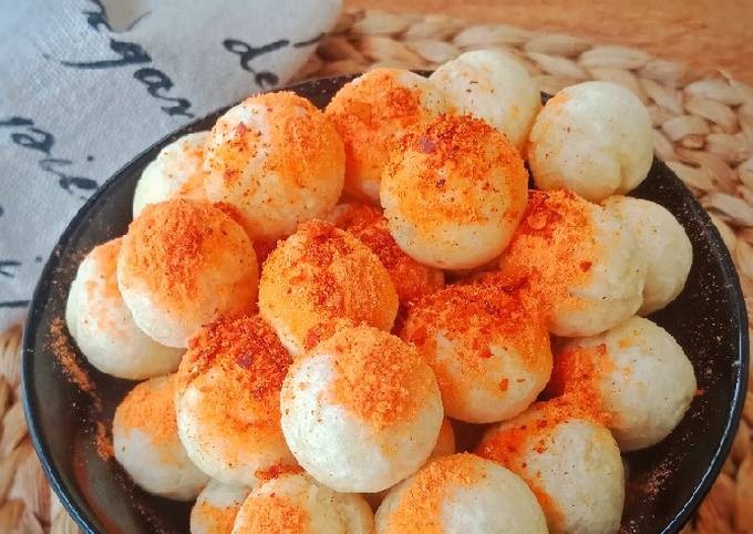 Cimol adalah makanan khas Bandung yang populer dan banyak dijadikan camilan banyak kalangan. Rasa gurih dan tekstur kenyalnya setelah digoreng membuat cimol lebih nikmat untuk disantap di berbagai suasana. Kamu juga bisa tambahkan bubuk bumbu berbagai rasa untuk menciptakan cita rasa cimol yang tidak membosankan.
